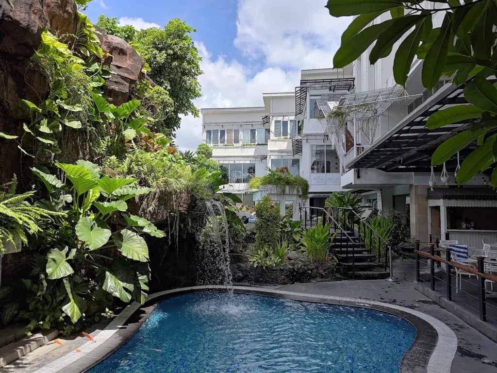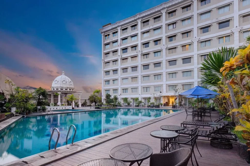 Hotel yang mempunyai desain kombinasi klasik dan modern dengan fasilitas kolam renang Outdoor menjadi tempat paling tepat saat berlibur di Jogja.